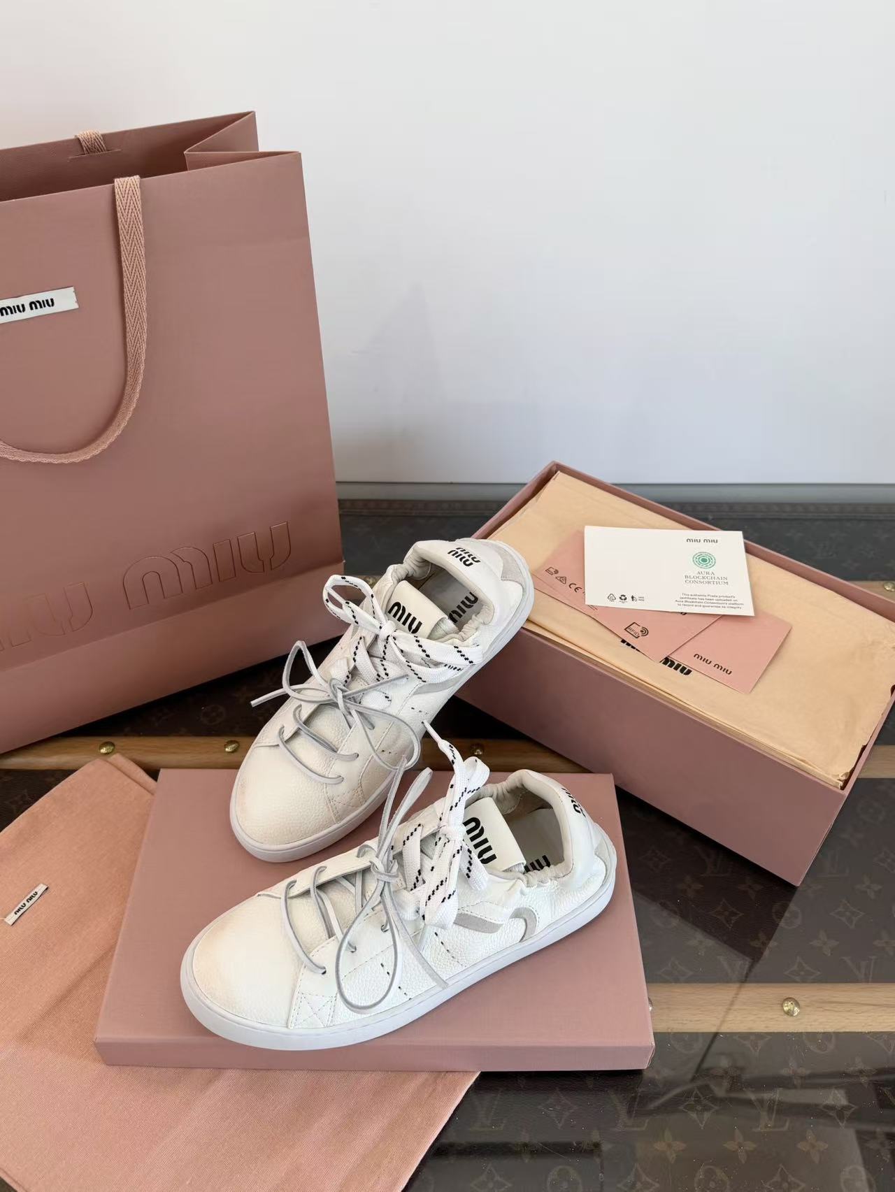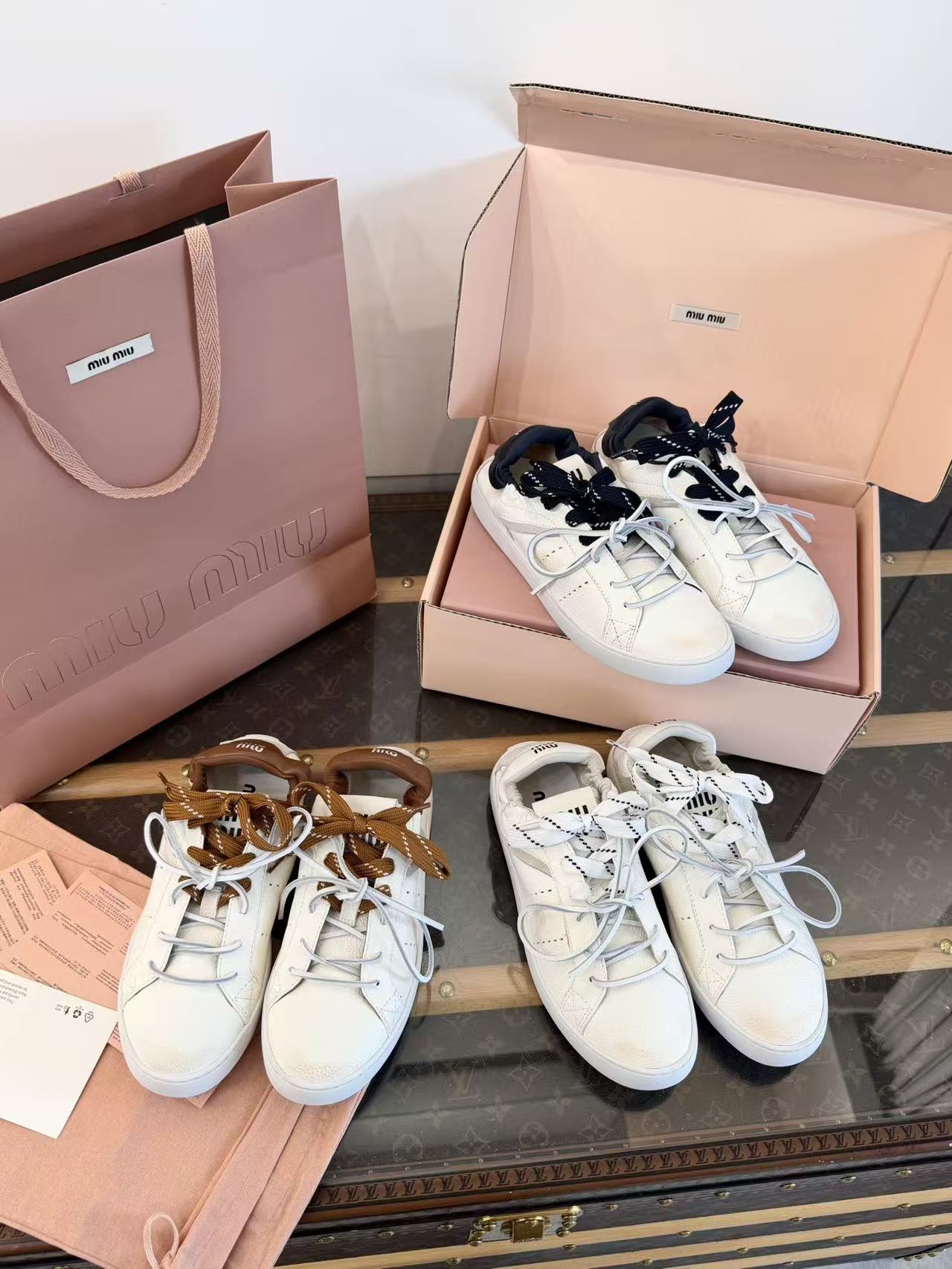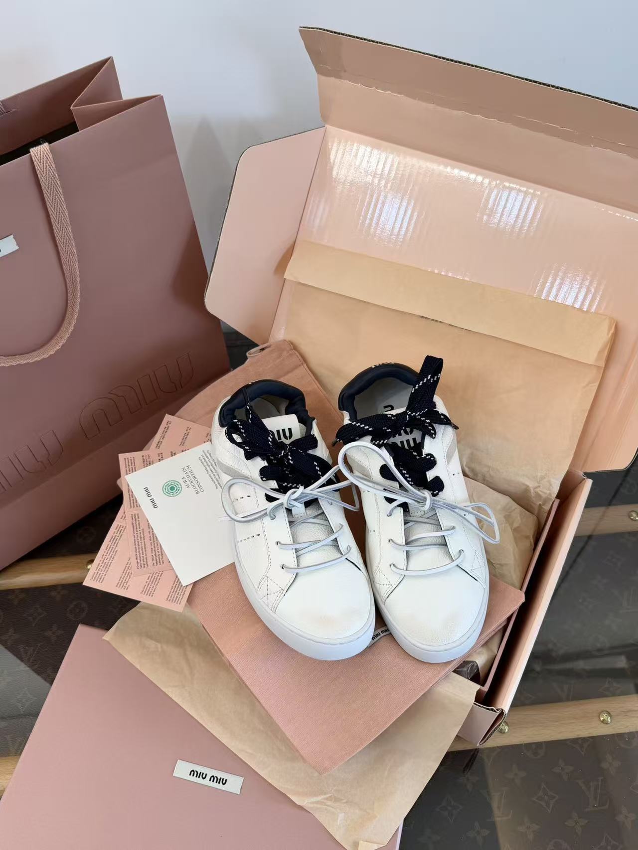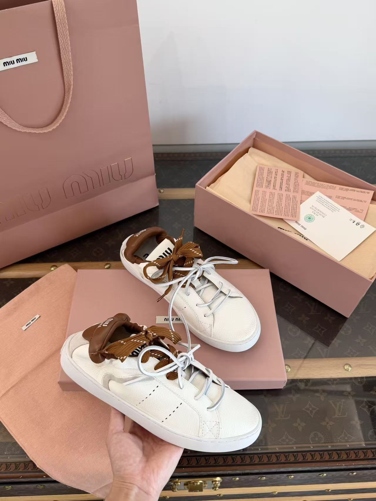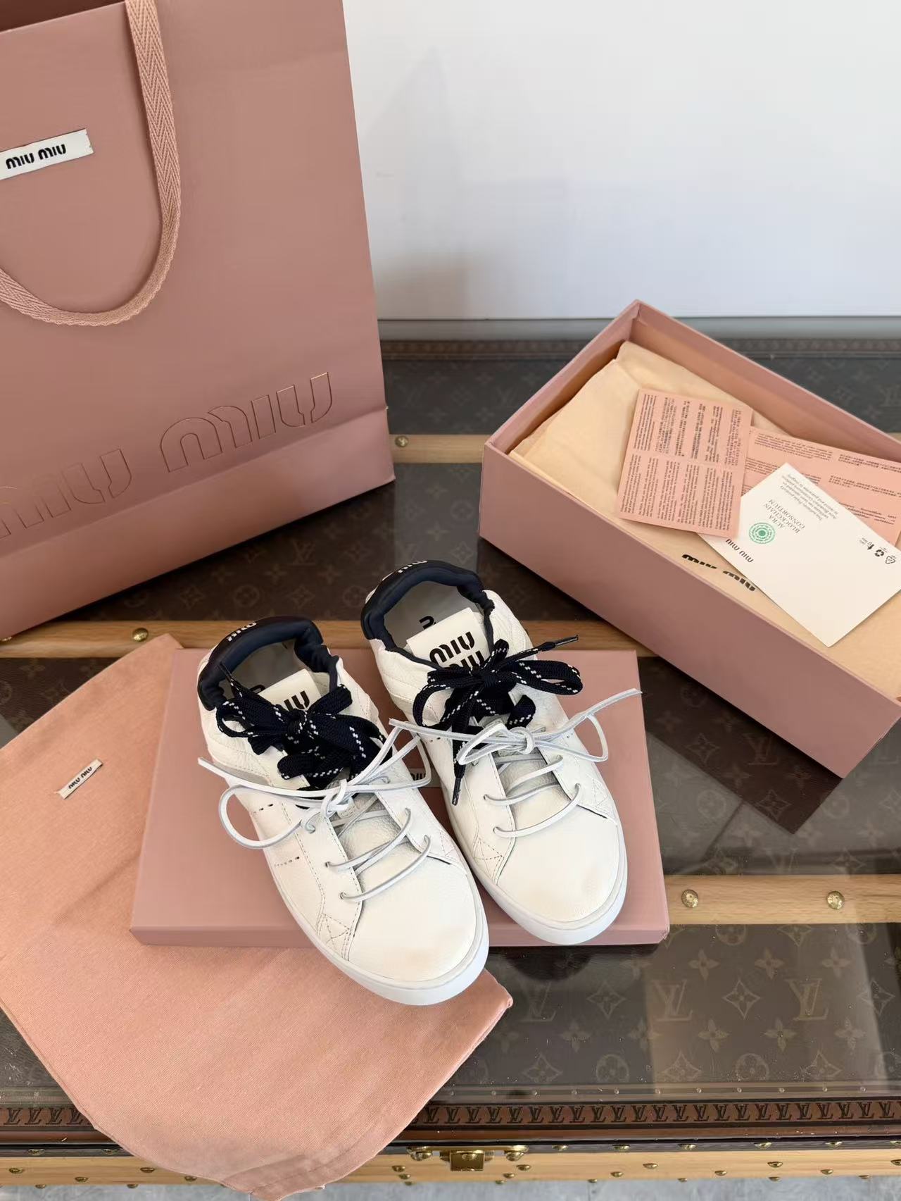 2026早春新品 Miu家 雙鞋帶做舊德訓鞋
