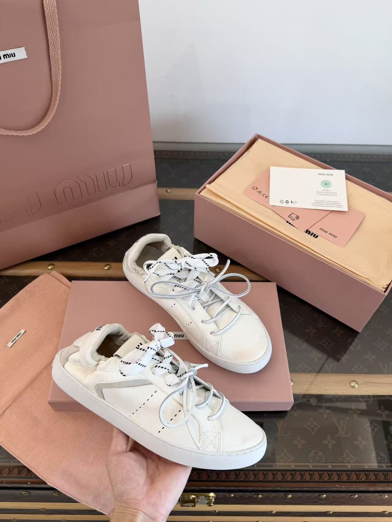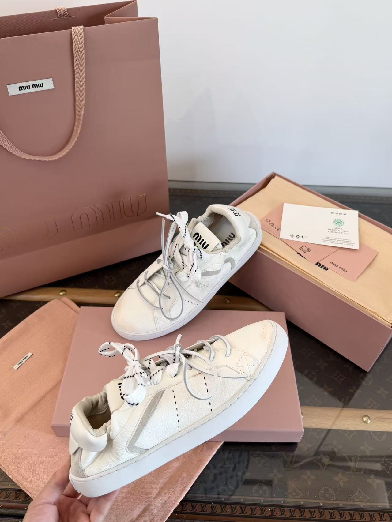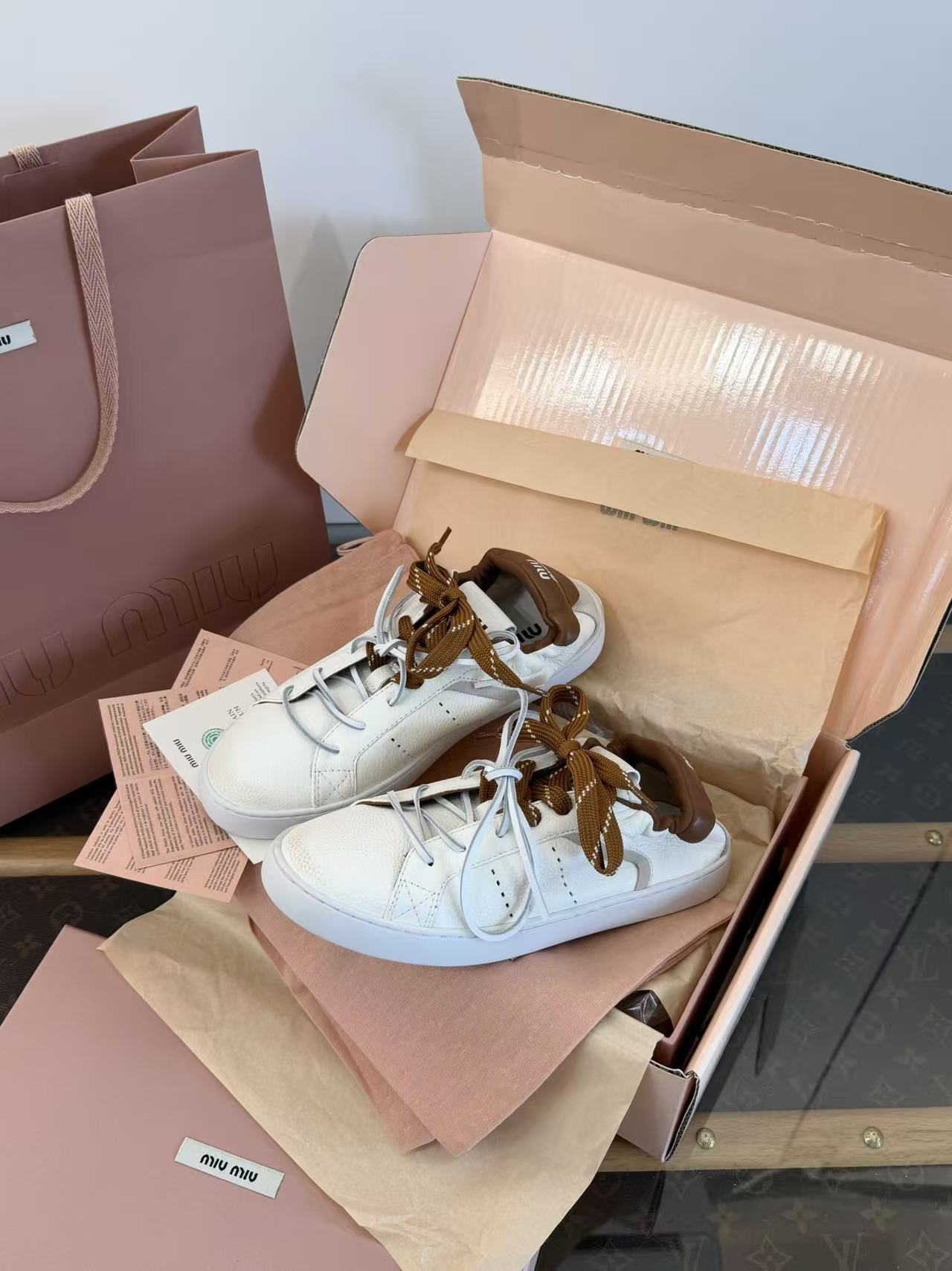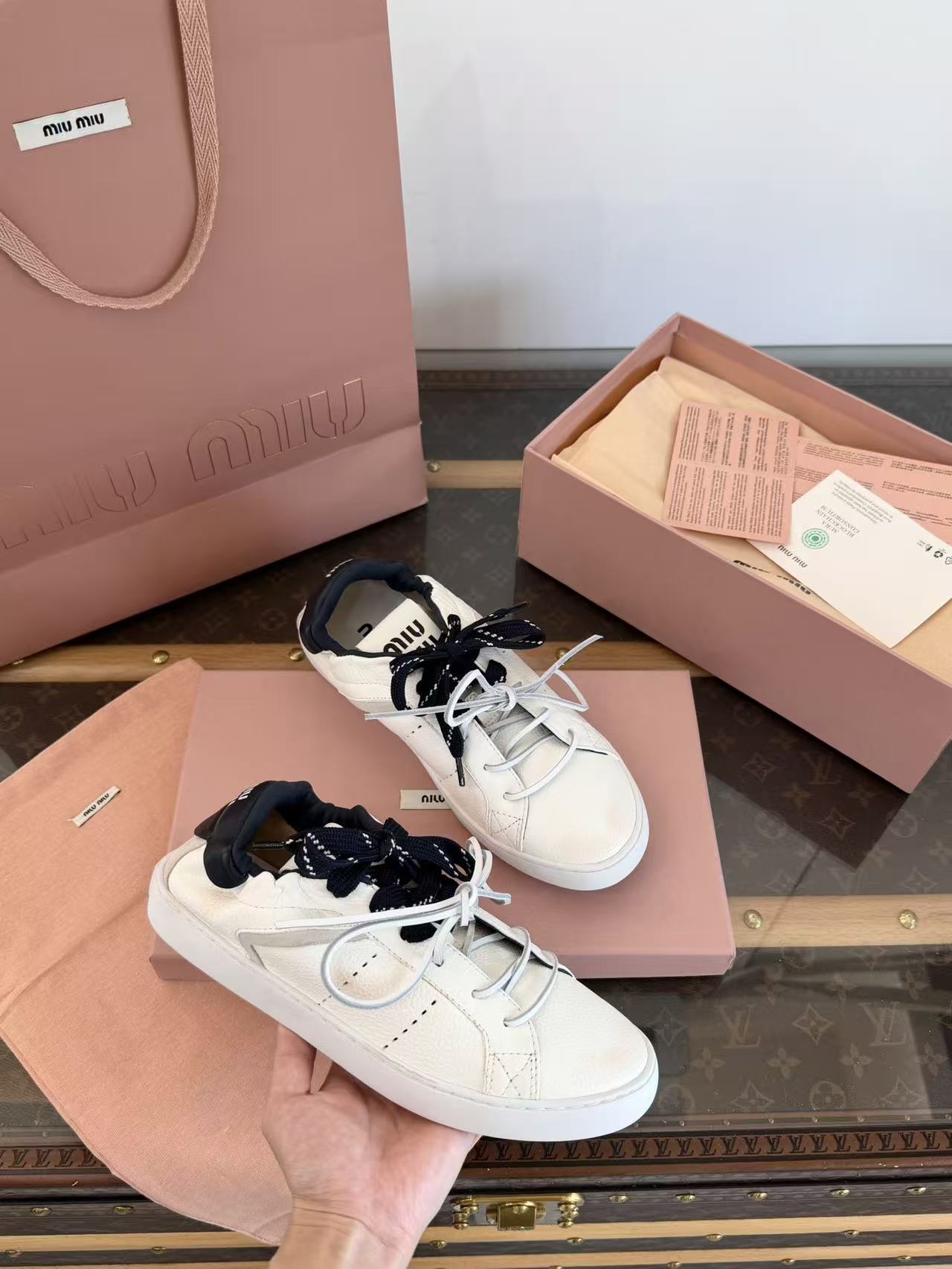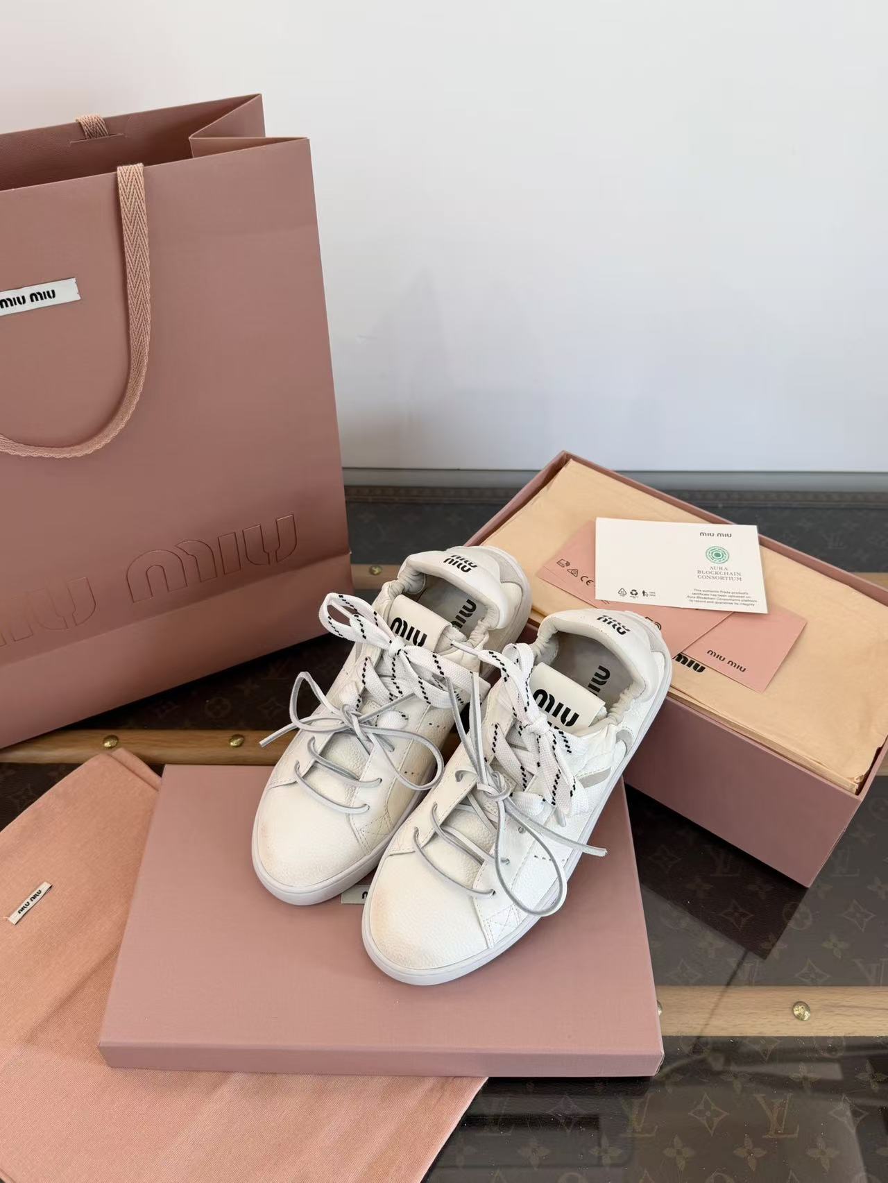 2026早春新品 Miu家 雙鞋帶做舊德訓鞋