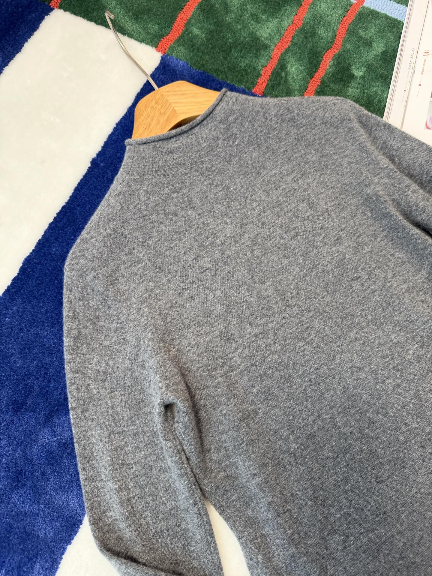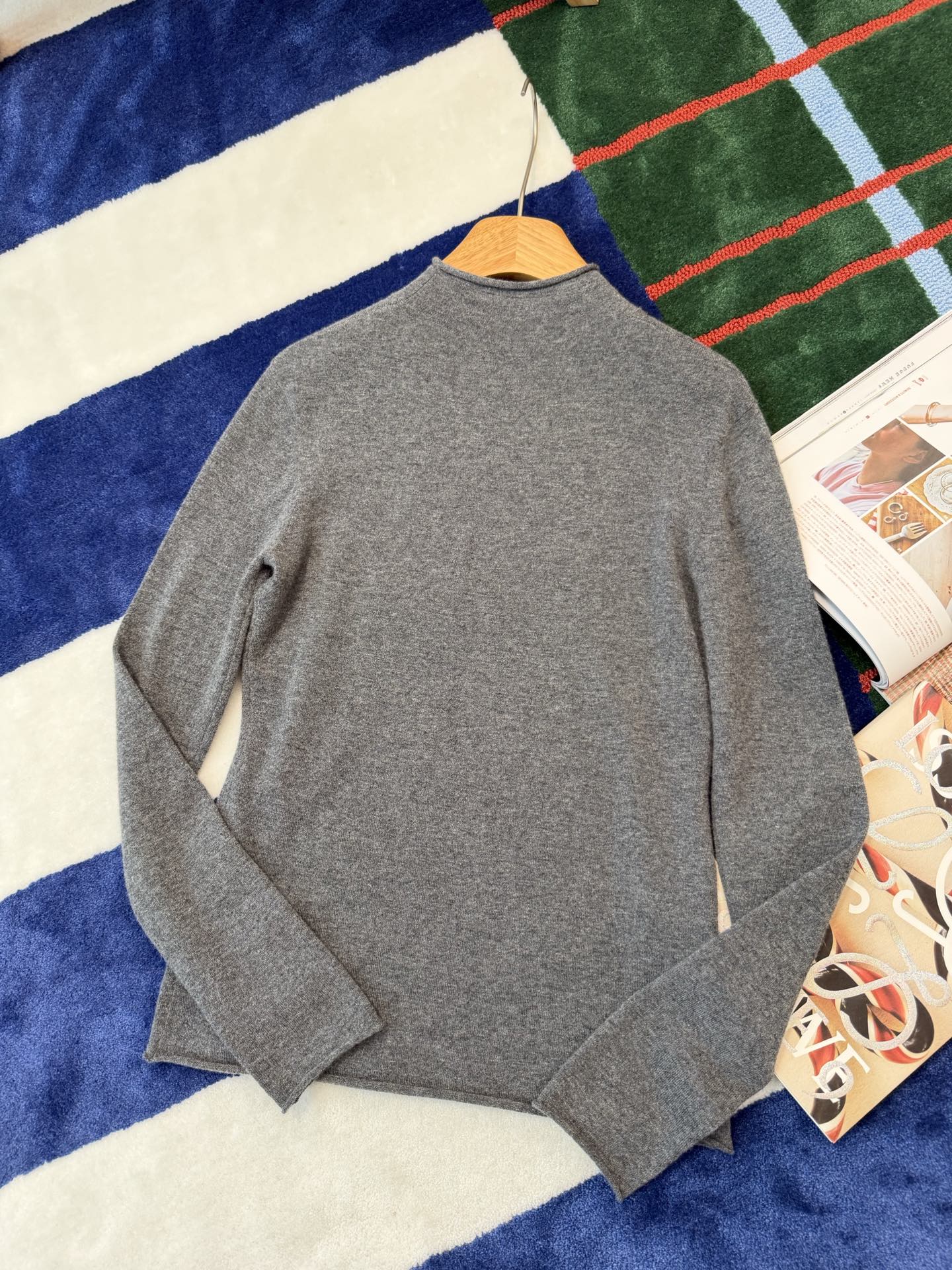 半高領設計讓整體多了一點優雅韻味,而微微捲邊的下擺又增添幾分慵懶感,穿起來既舒服又時髦。