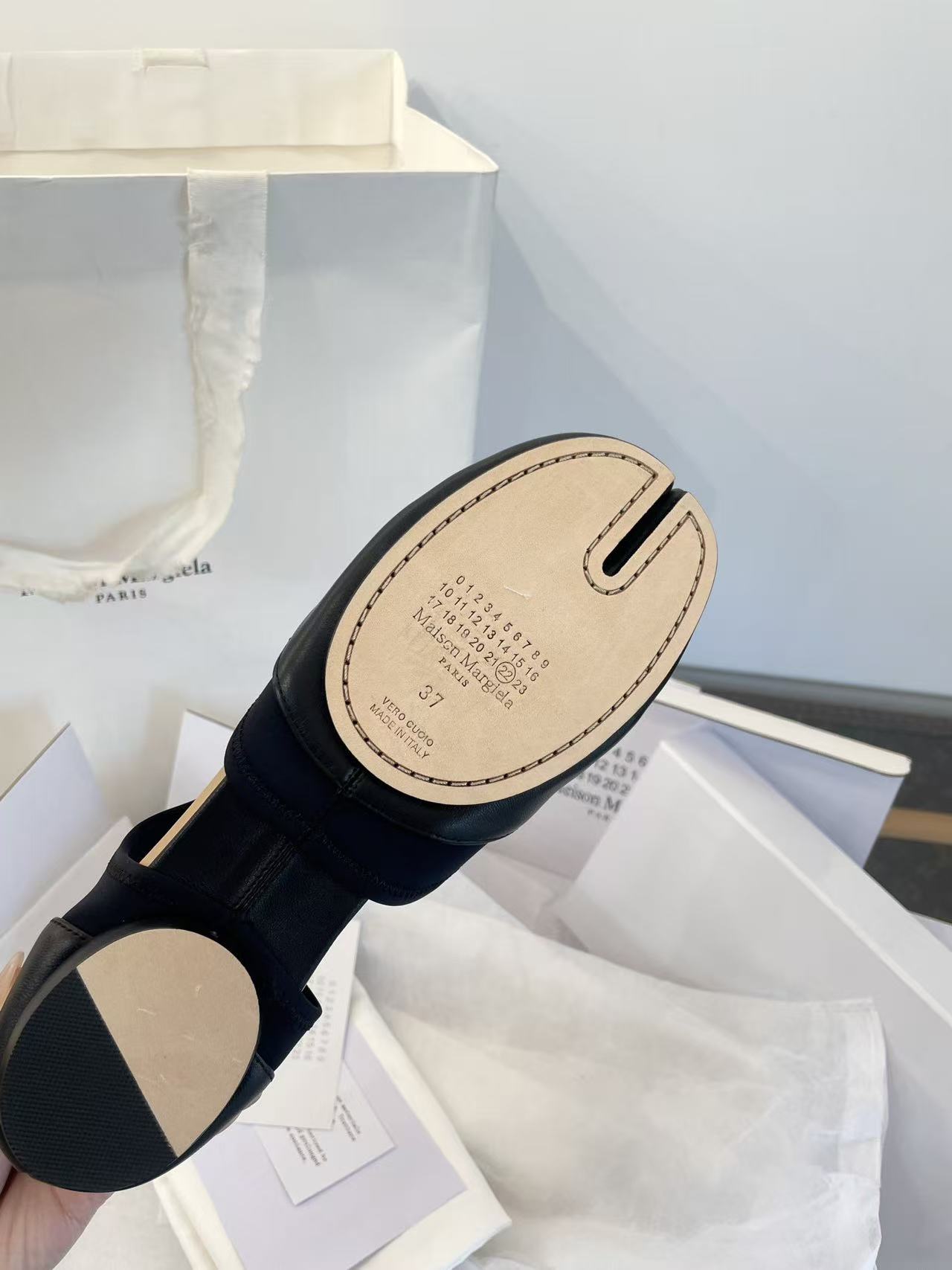 經典 Tabi 分趾構造: 傳承自日本傳統足袋的解構靈感,具備極高的品牌標識度與視覺衝擊力。