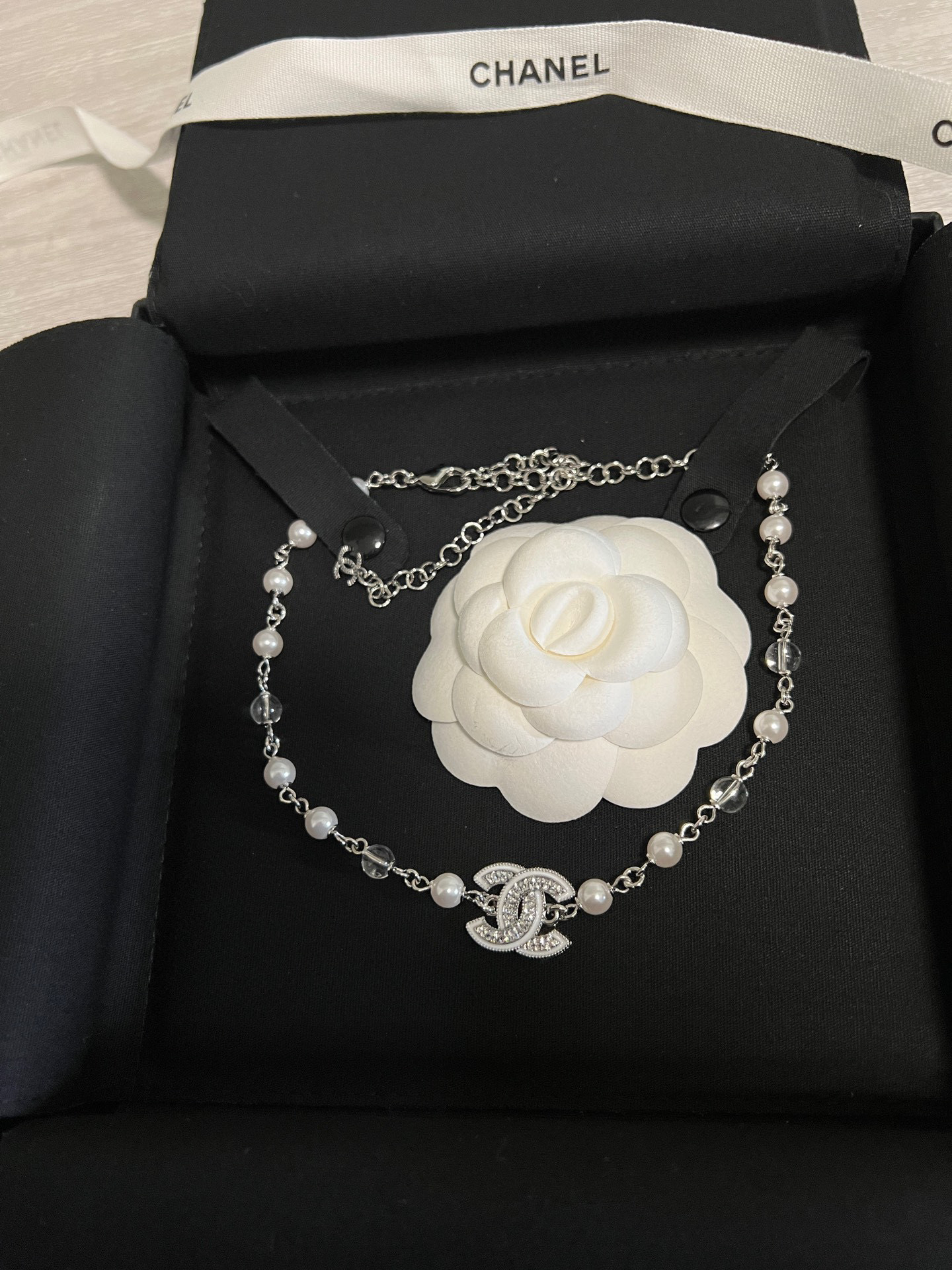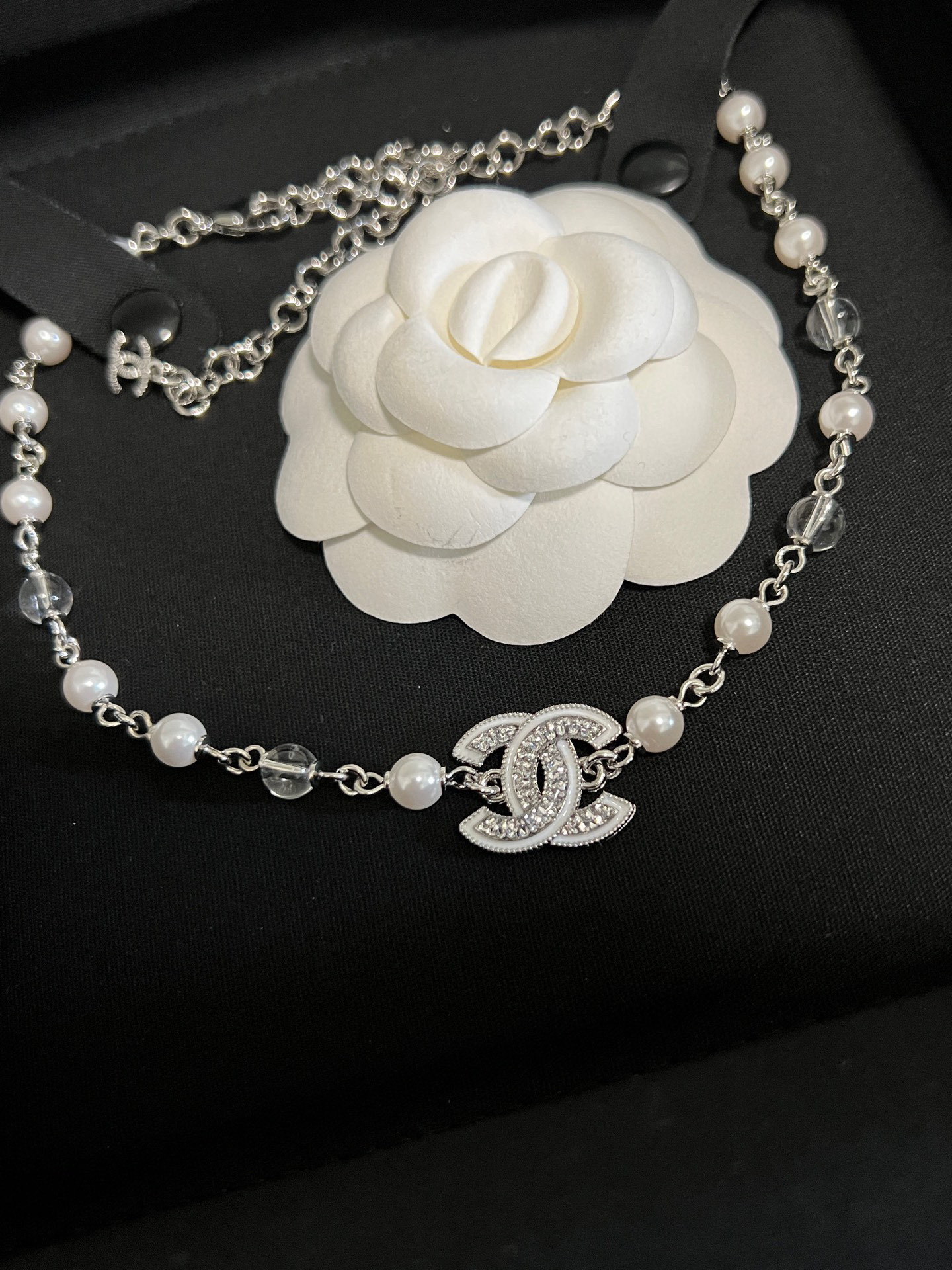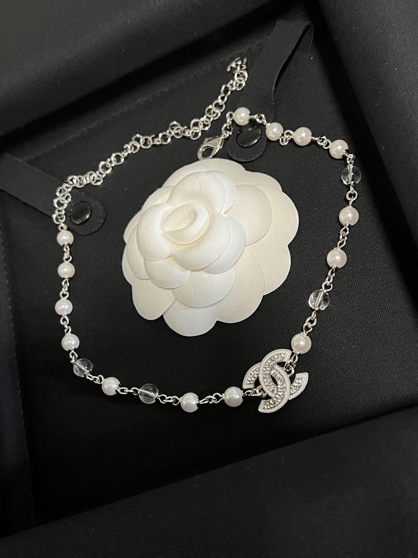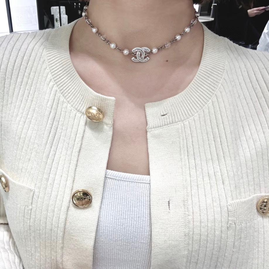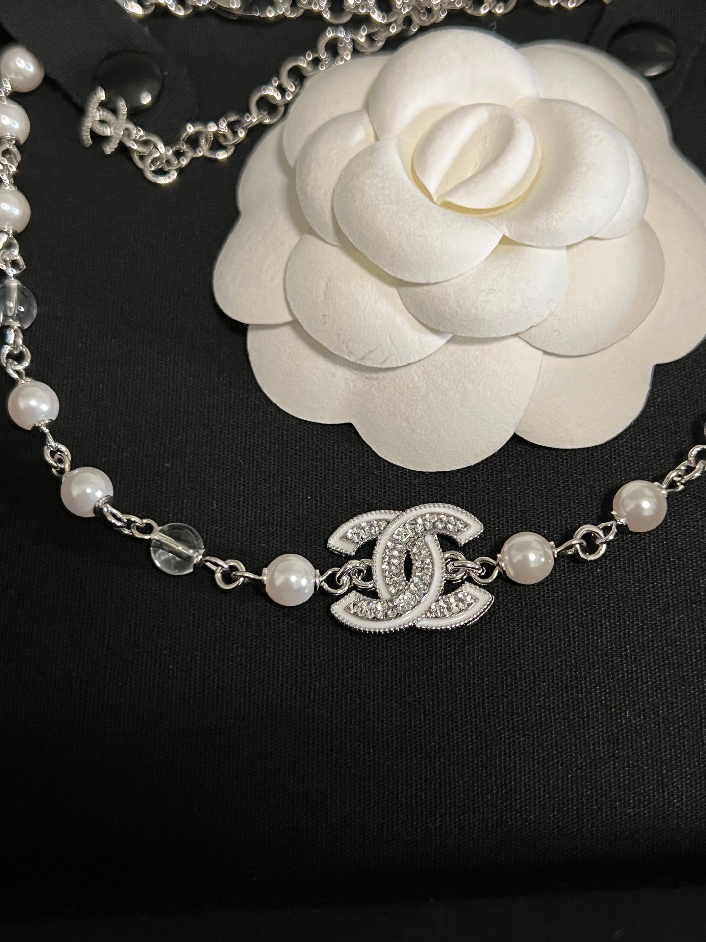2025春夏新品 C家 白邊滿鑽雙C晶珠項鍊