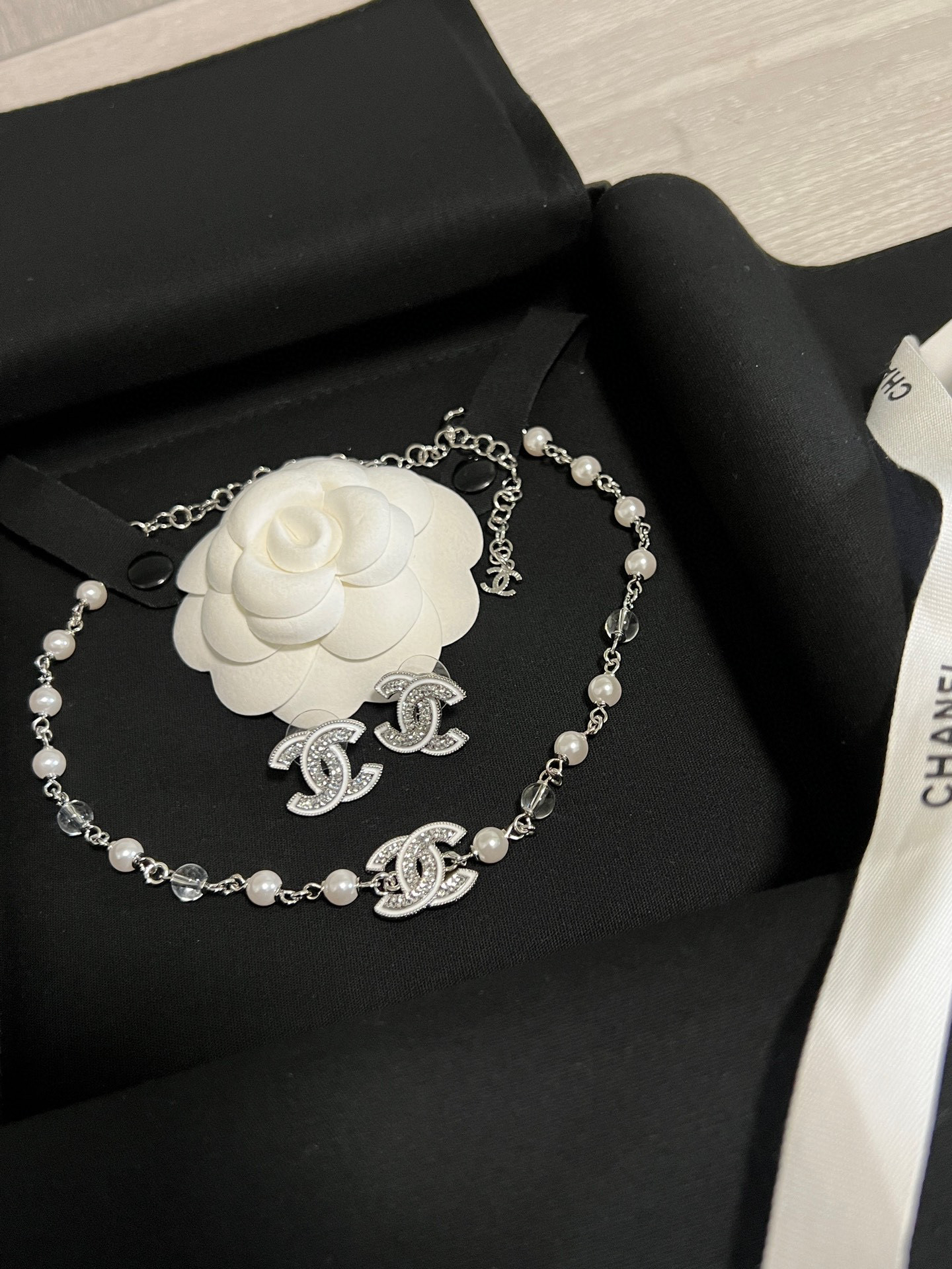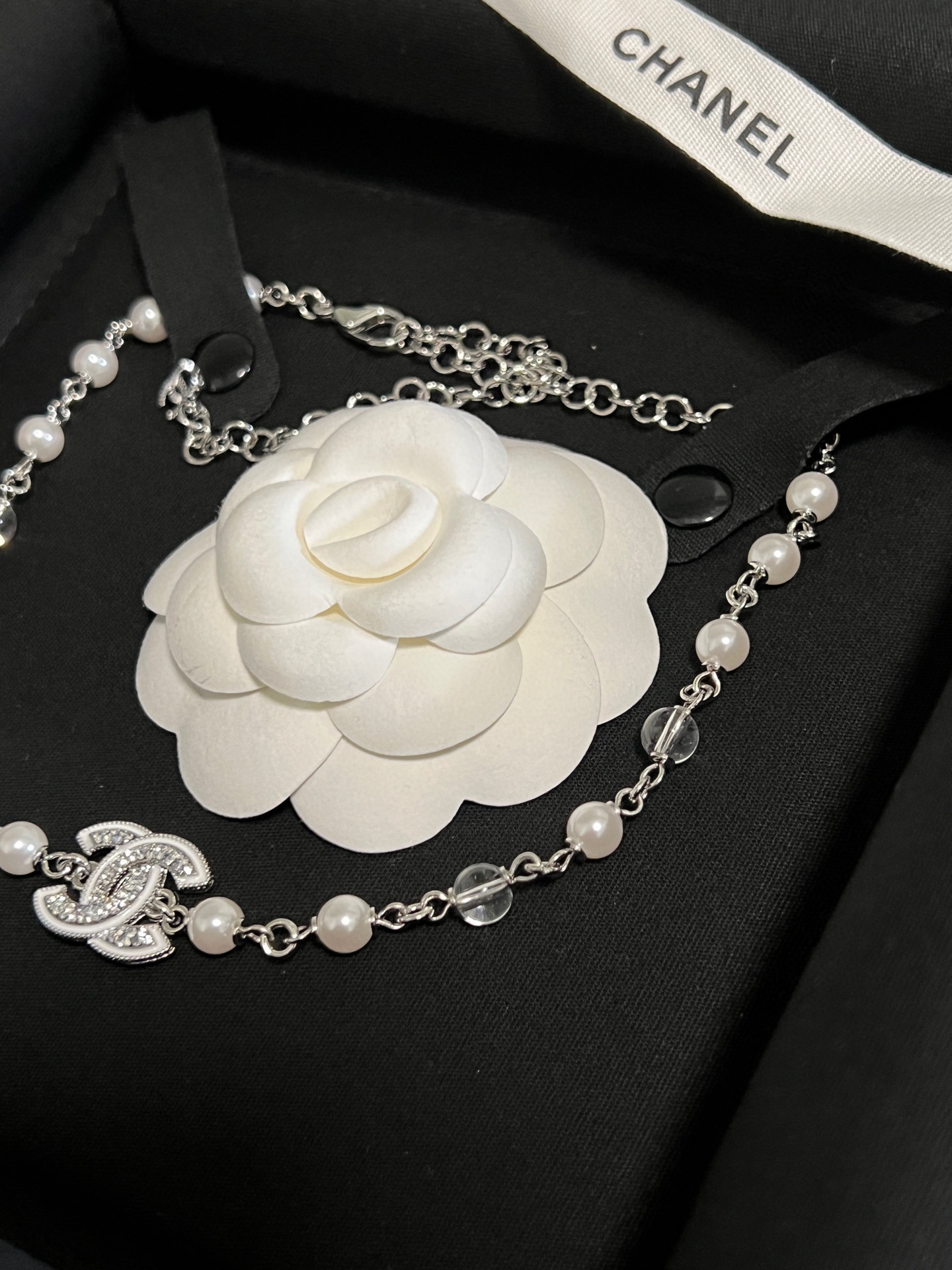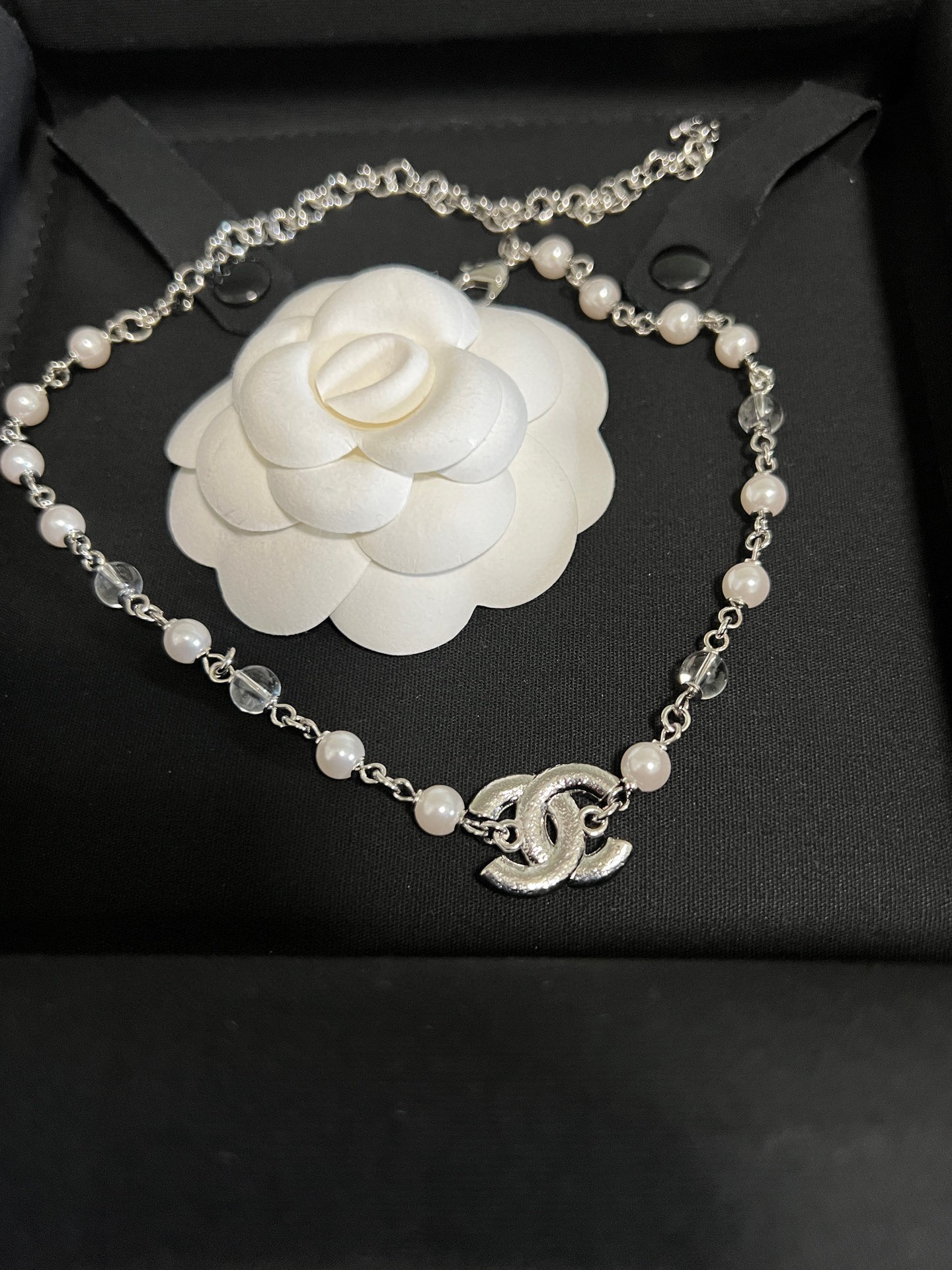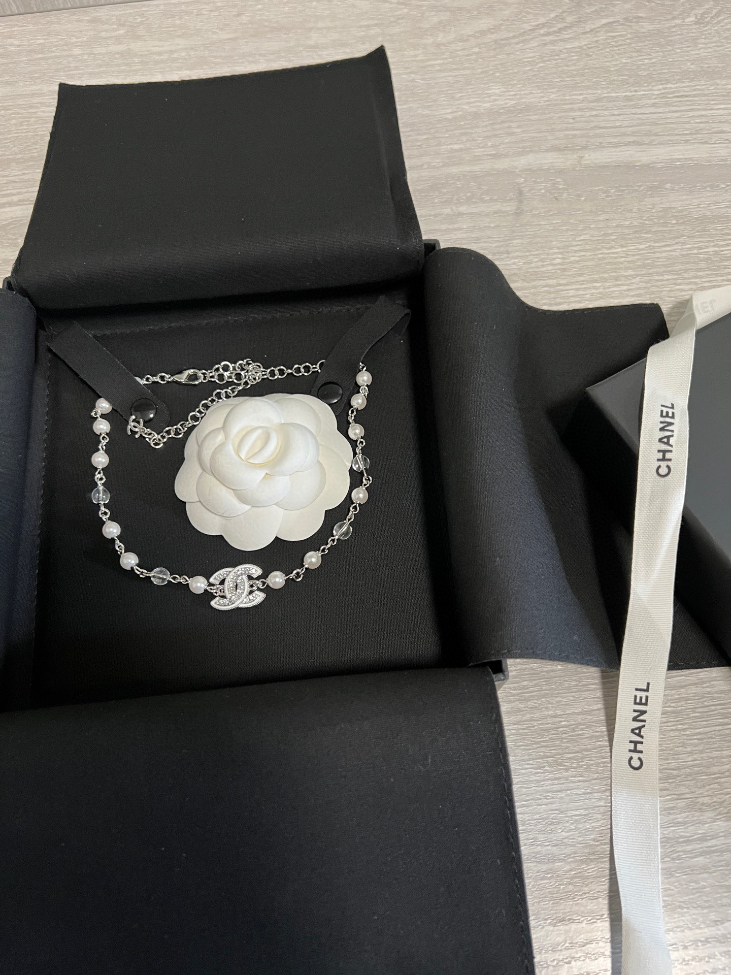 2025春夏新品 C家 白邊滿鑽雙C晶珠項鍊
