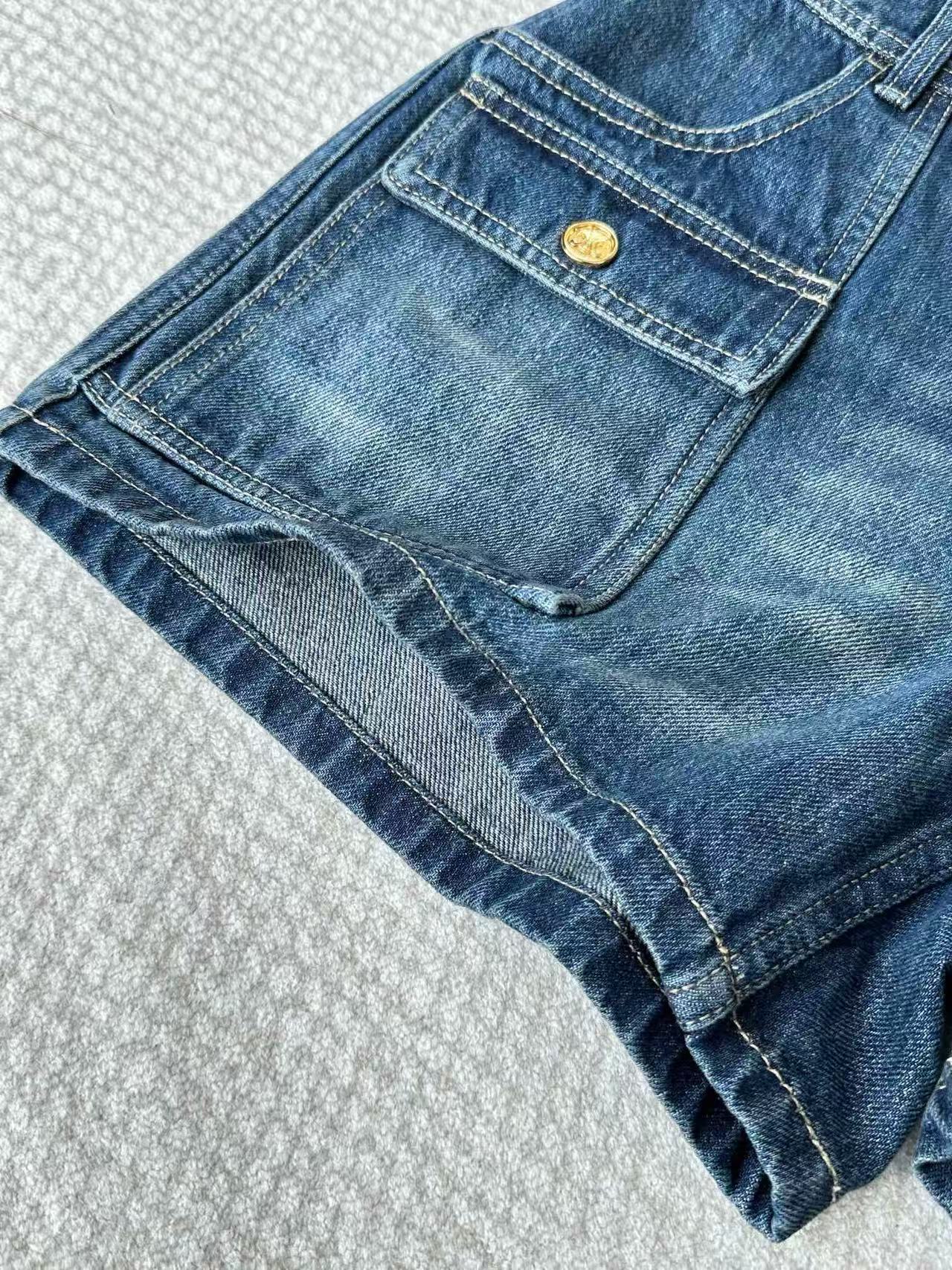2025夏季新品 CE家 高腰雙扣工裝口袋牛仔短褲