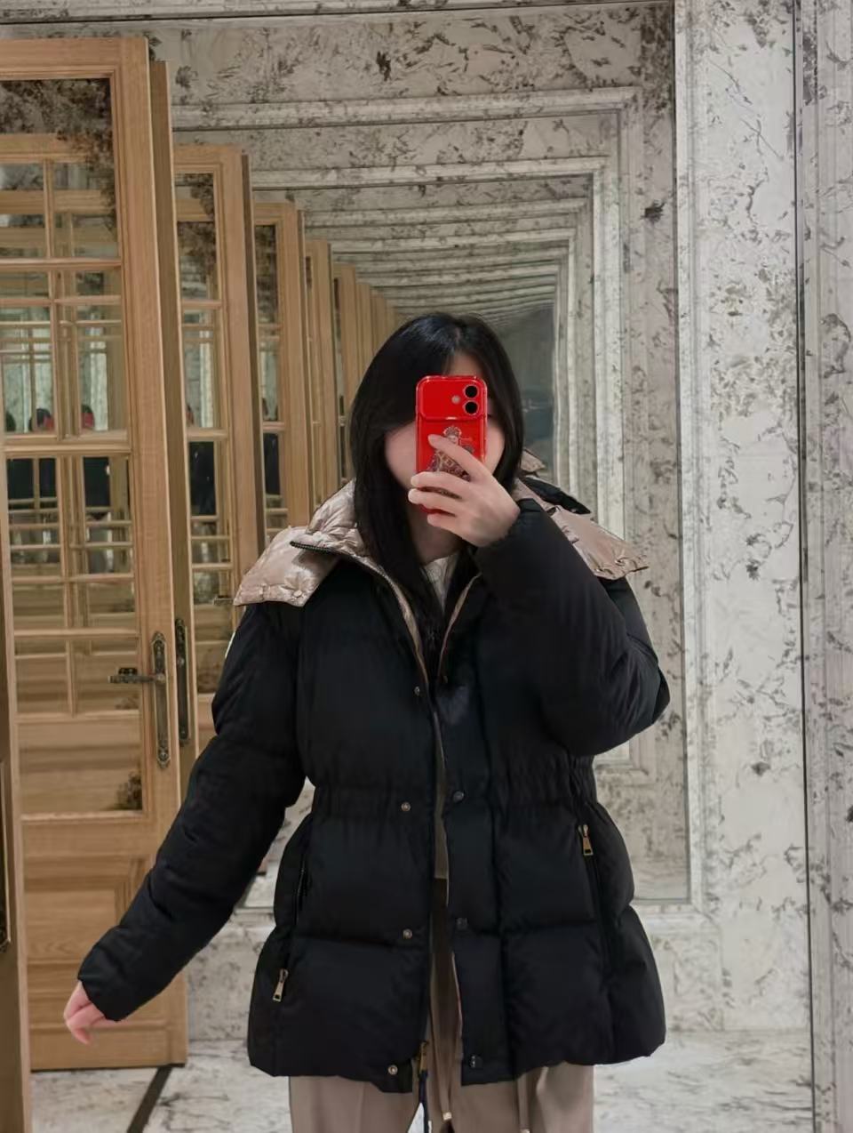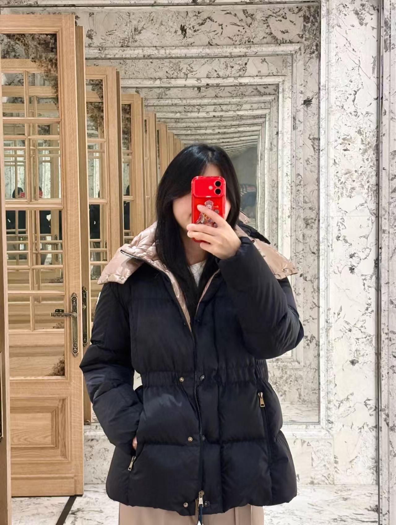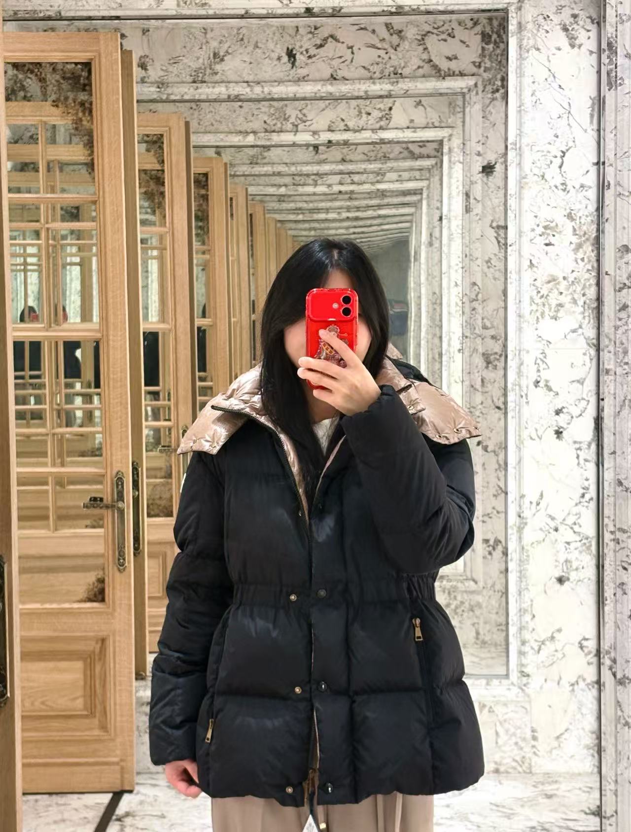 2025早秋 M家 Agneux 收腰黑金方形絎縫羽絨外套