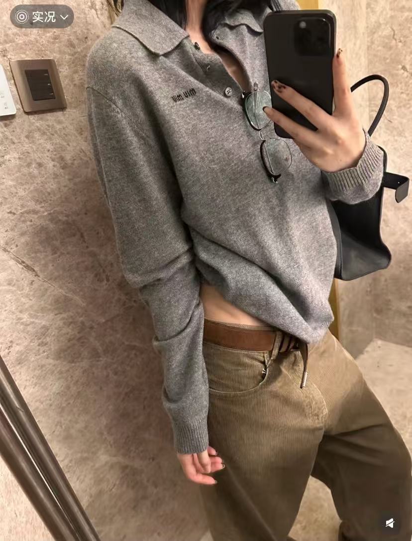 2025秋冬 Miu家 徽標羊毛POLO 衫