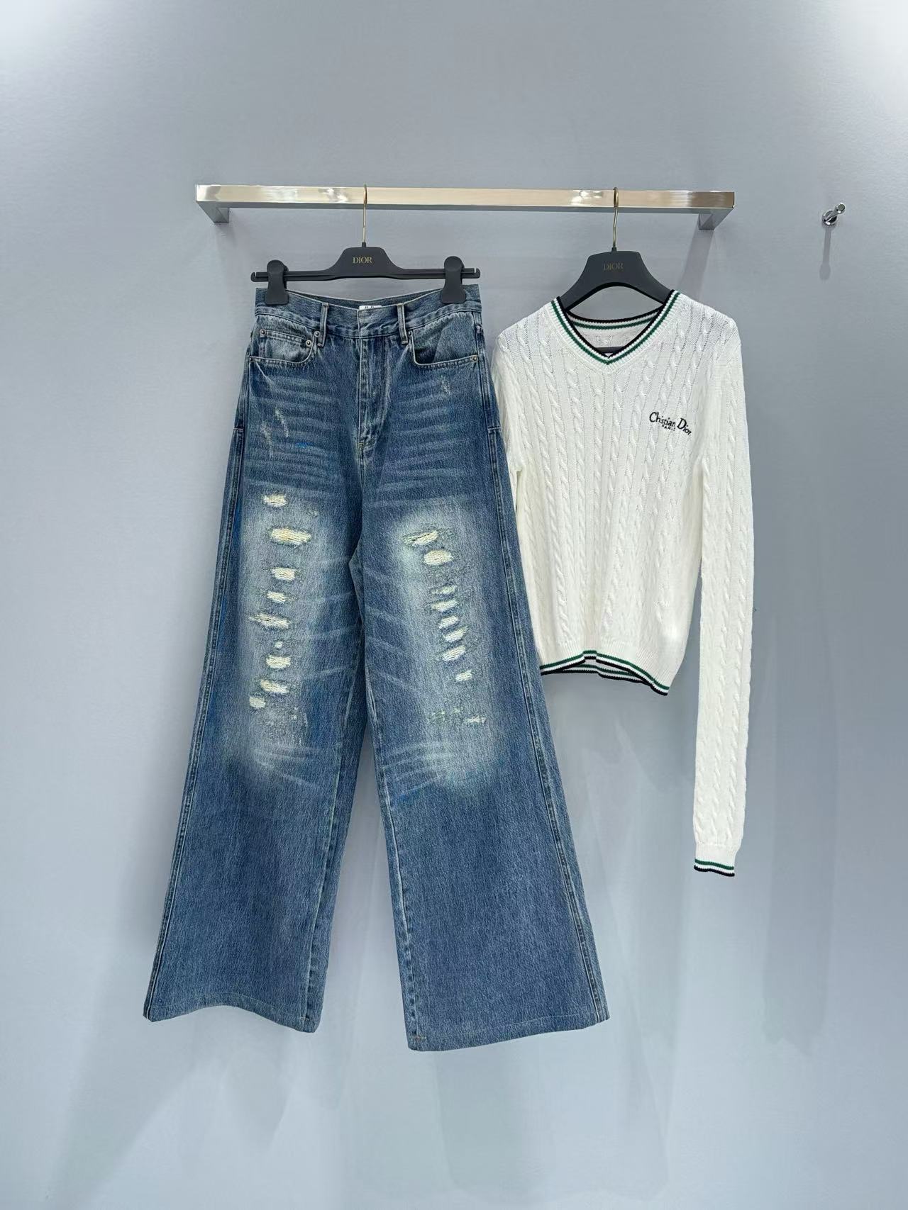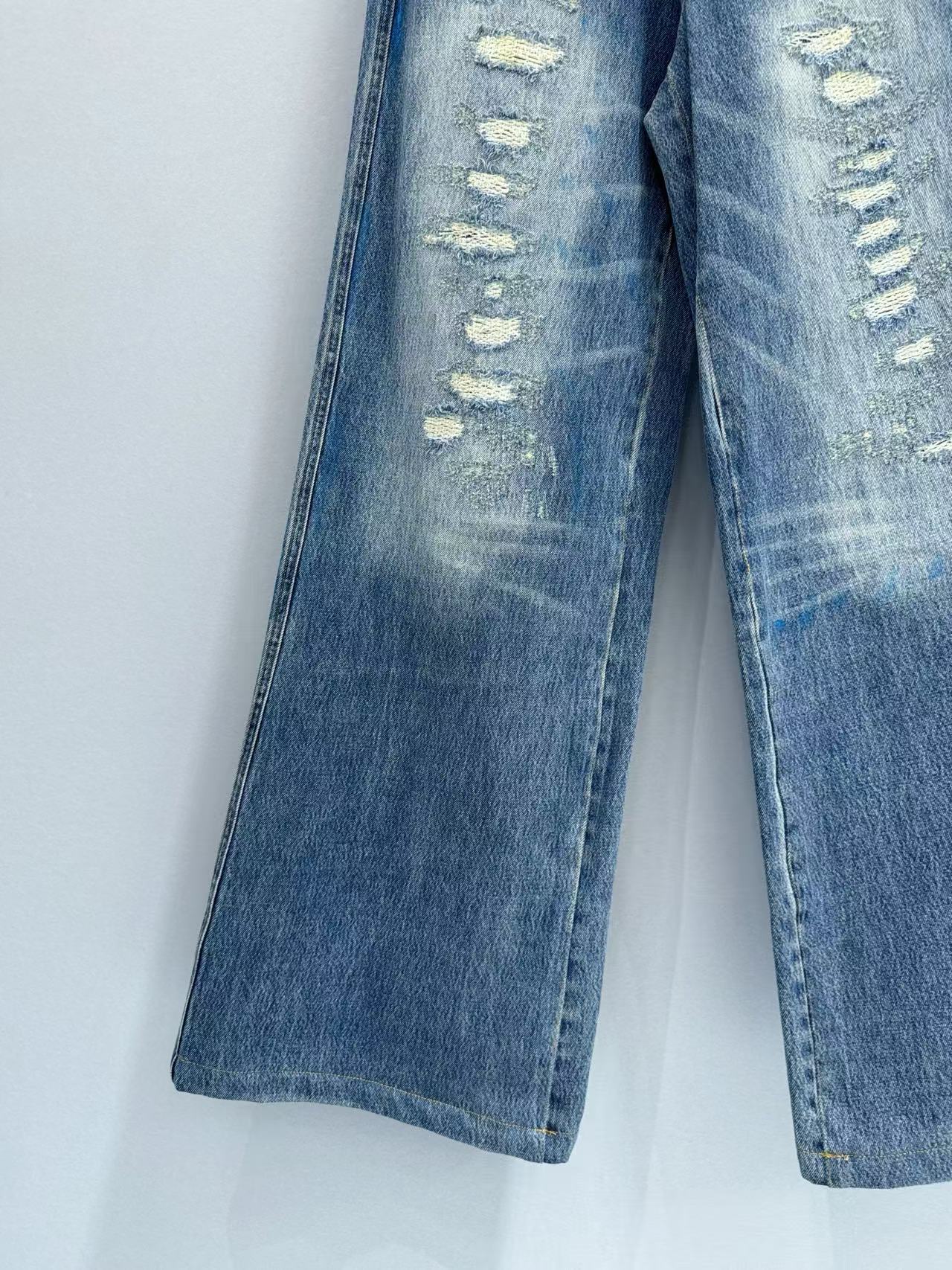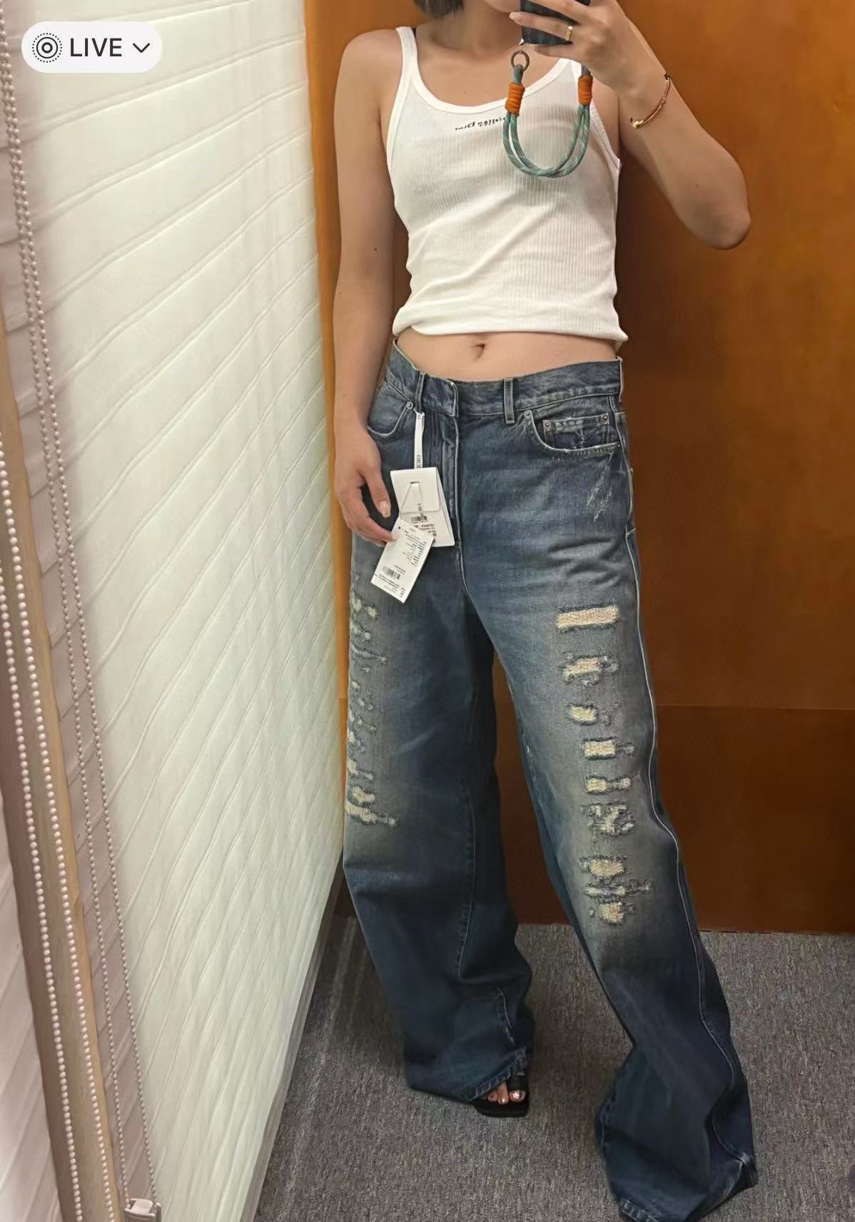 2025春夏 D家 復古破洞闊腿牛仔褲|春夏必備高質感單品!