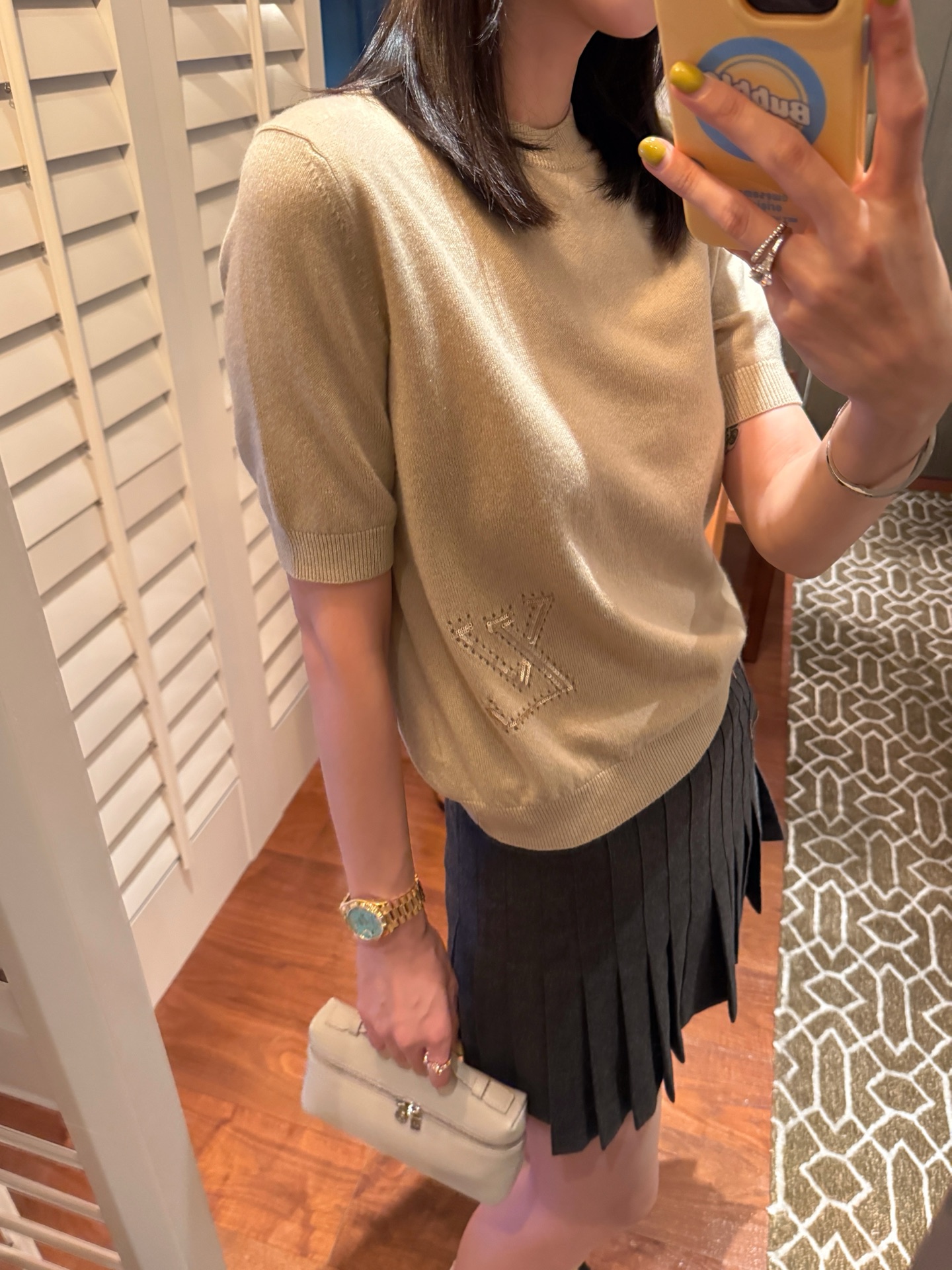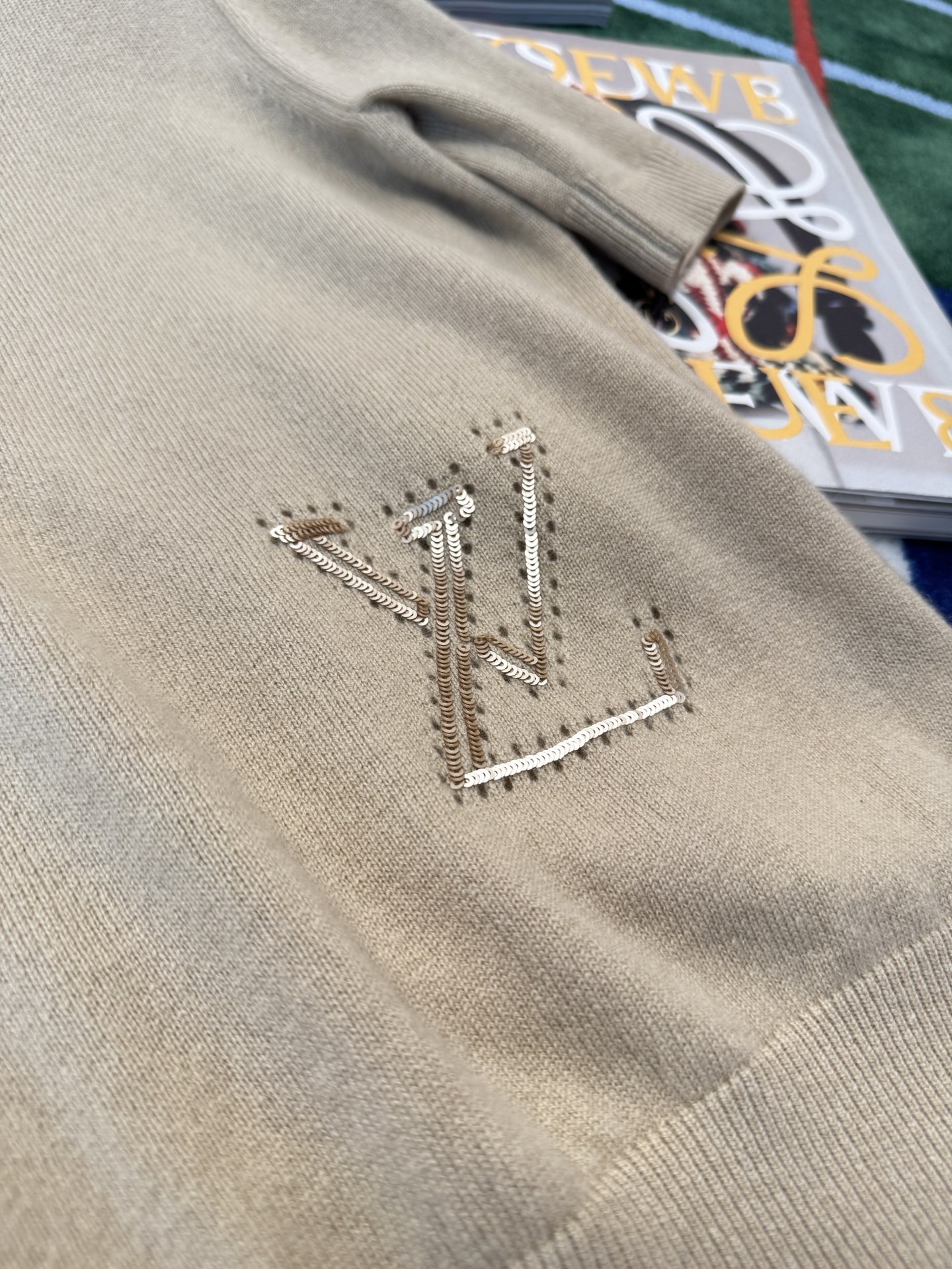 2025秋冬新品 L家 手工亮片logo針織短袖