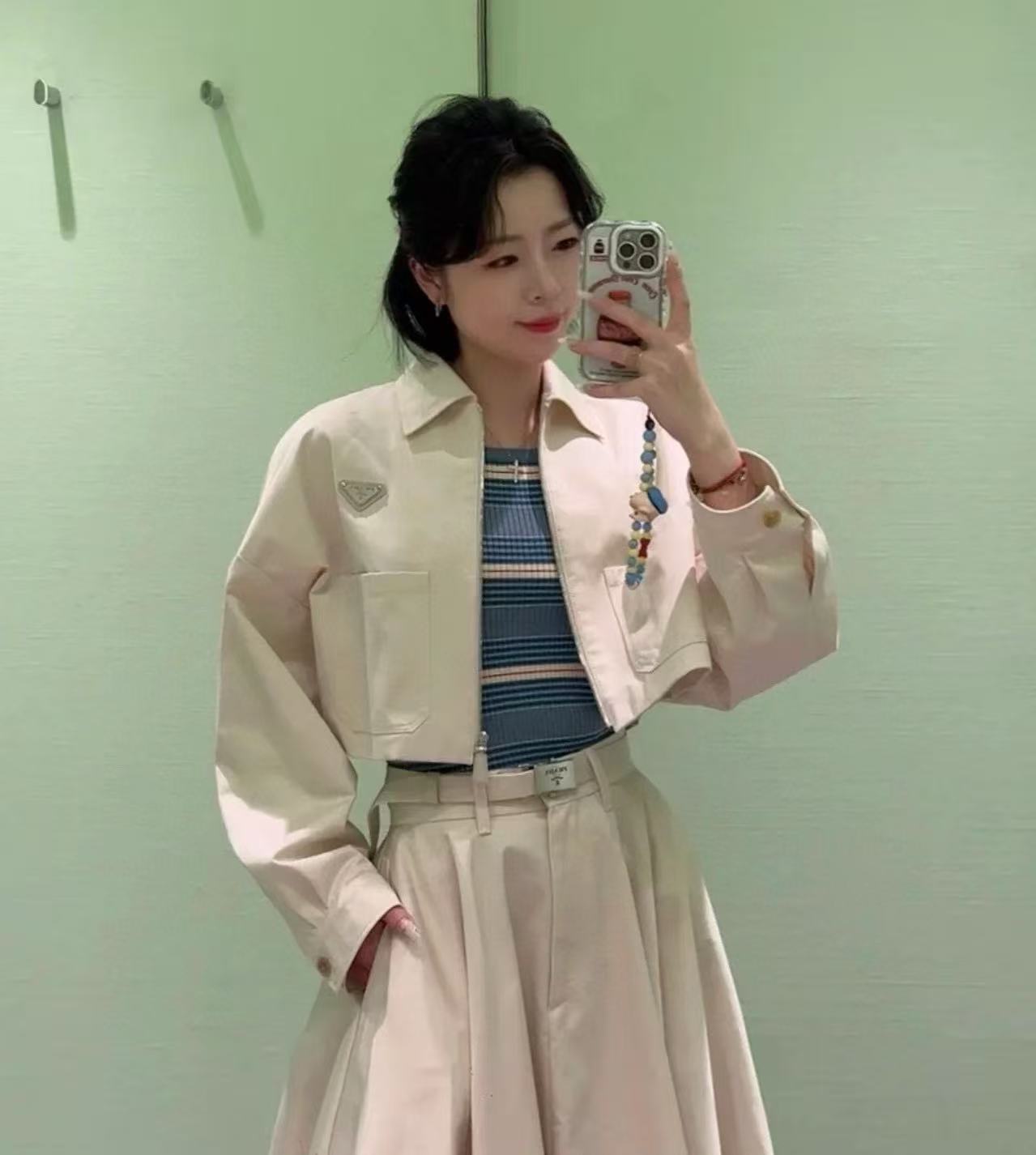 短版版型巧妙拉長身形比例,無論是搭配高腰褲、短裙還是運動內搭褲,