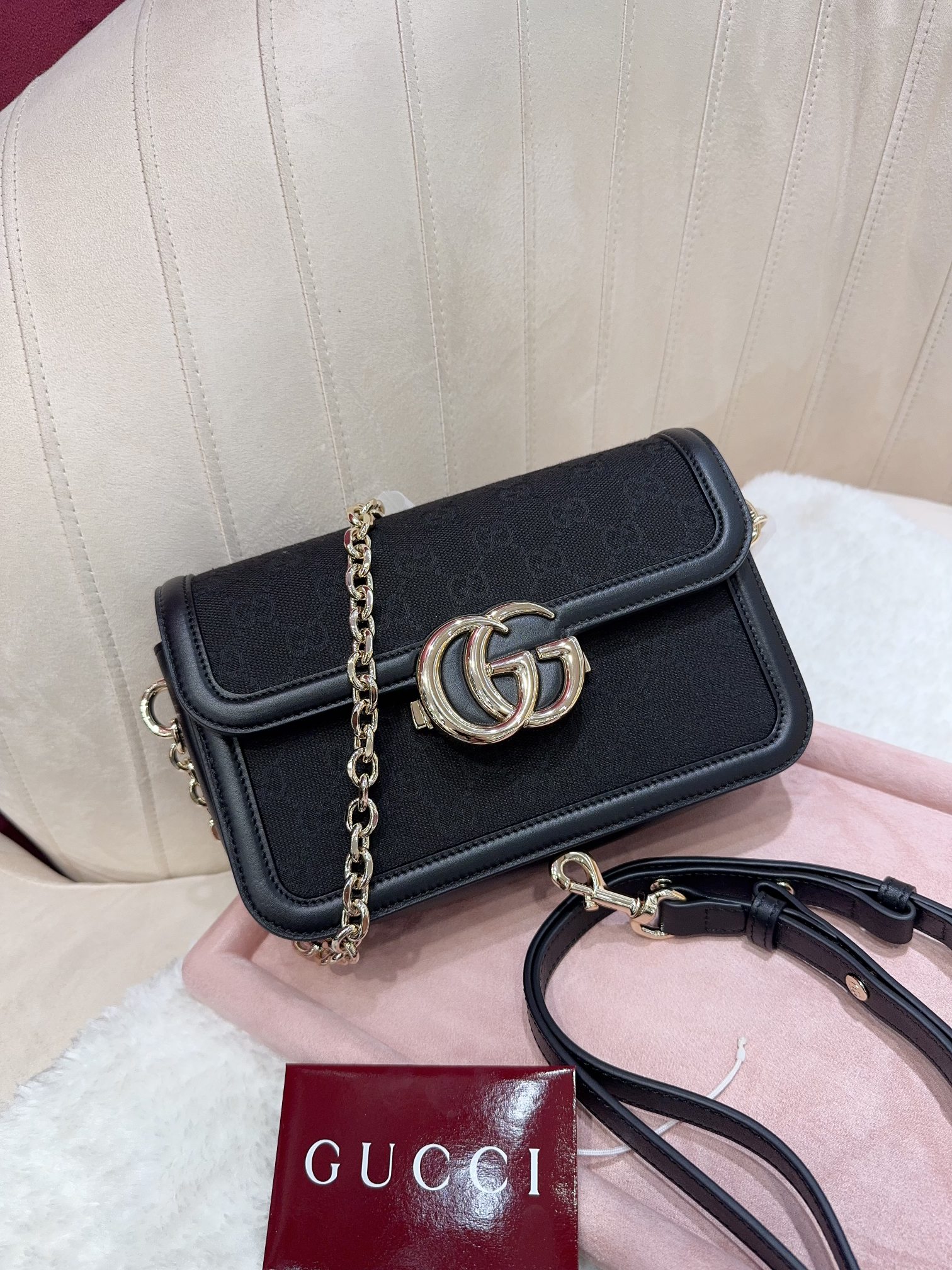 主體材質:輕盈 GG 帆布拼接黑色牛皮,整體質感挺括,耐用又不失高級感。