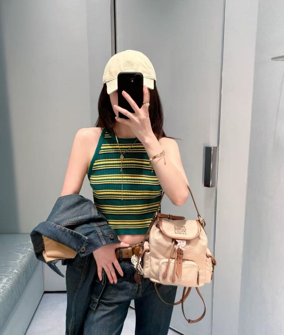 2026早春 Miu家 黃綠條紋綁帶吊帶
