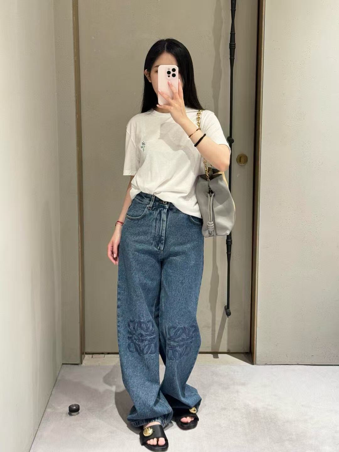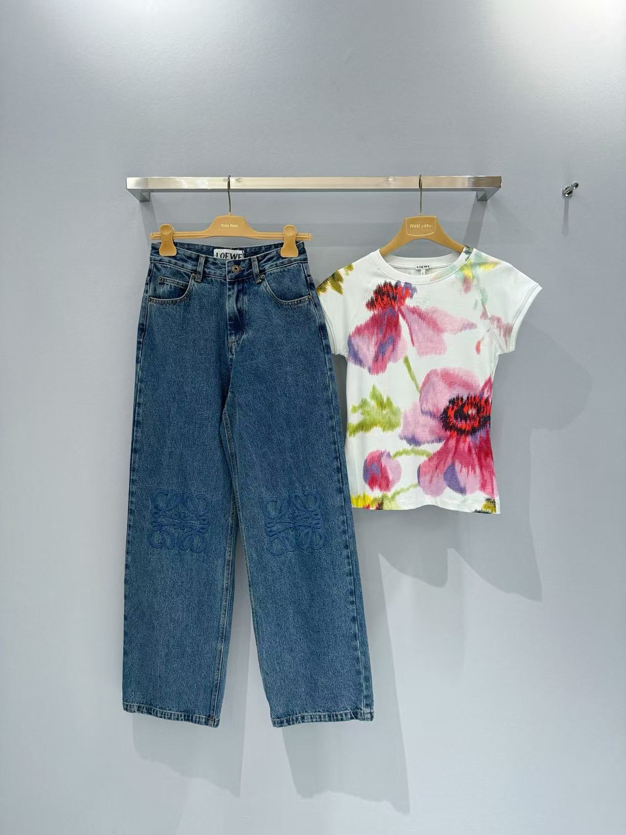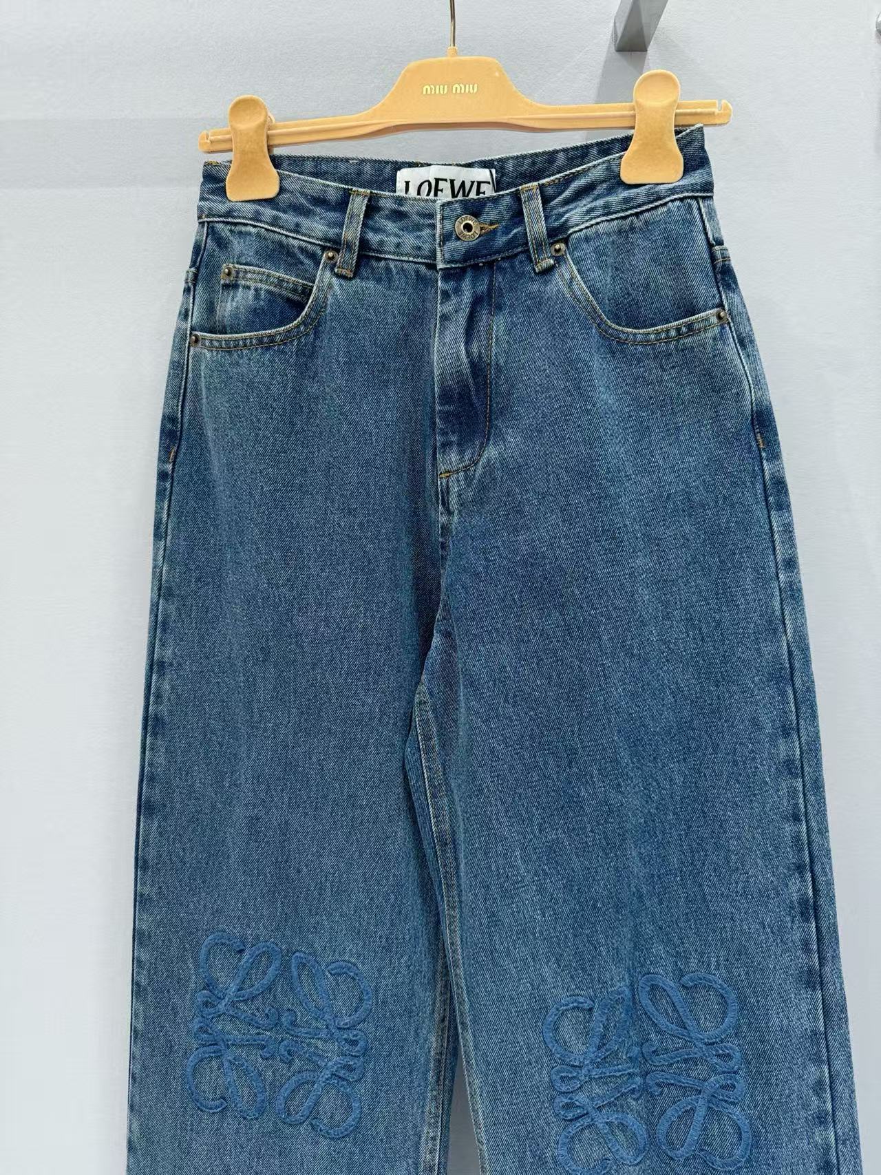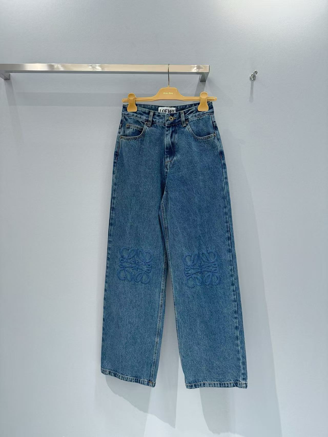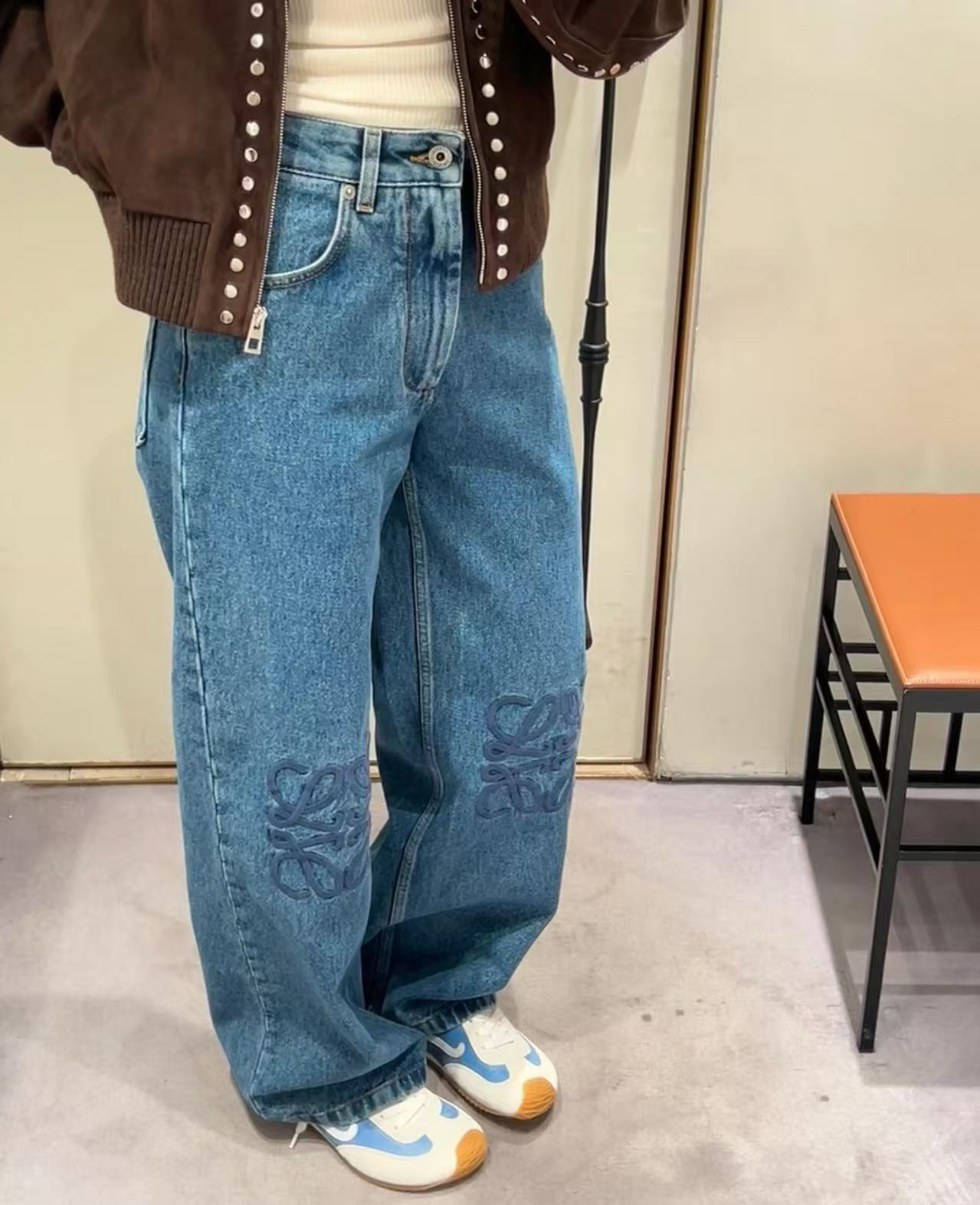 2025春夏 LEW家 復古刺繡 Logo 丹寧牛仔褲