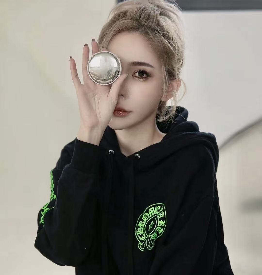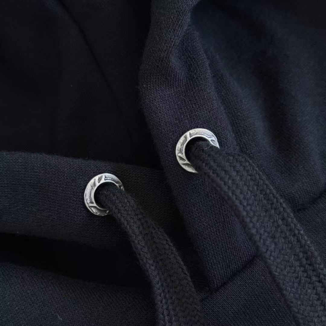 細節處更是展現了品牌作為銀飾帝國的尊榮,五金抽繩孔點綴了 925 純銀製雞眼扣,這種不經意間流露的金屬質感,才是精品衛衣最迷人的靈魂所在。