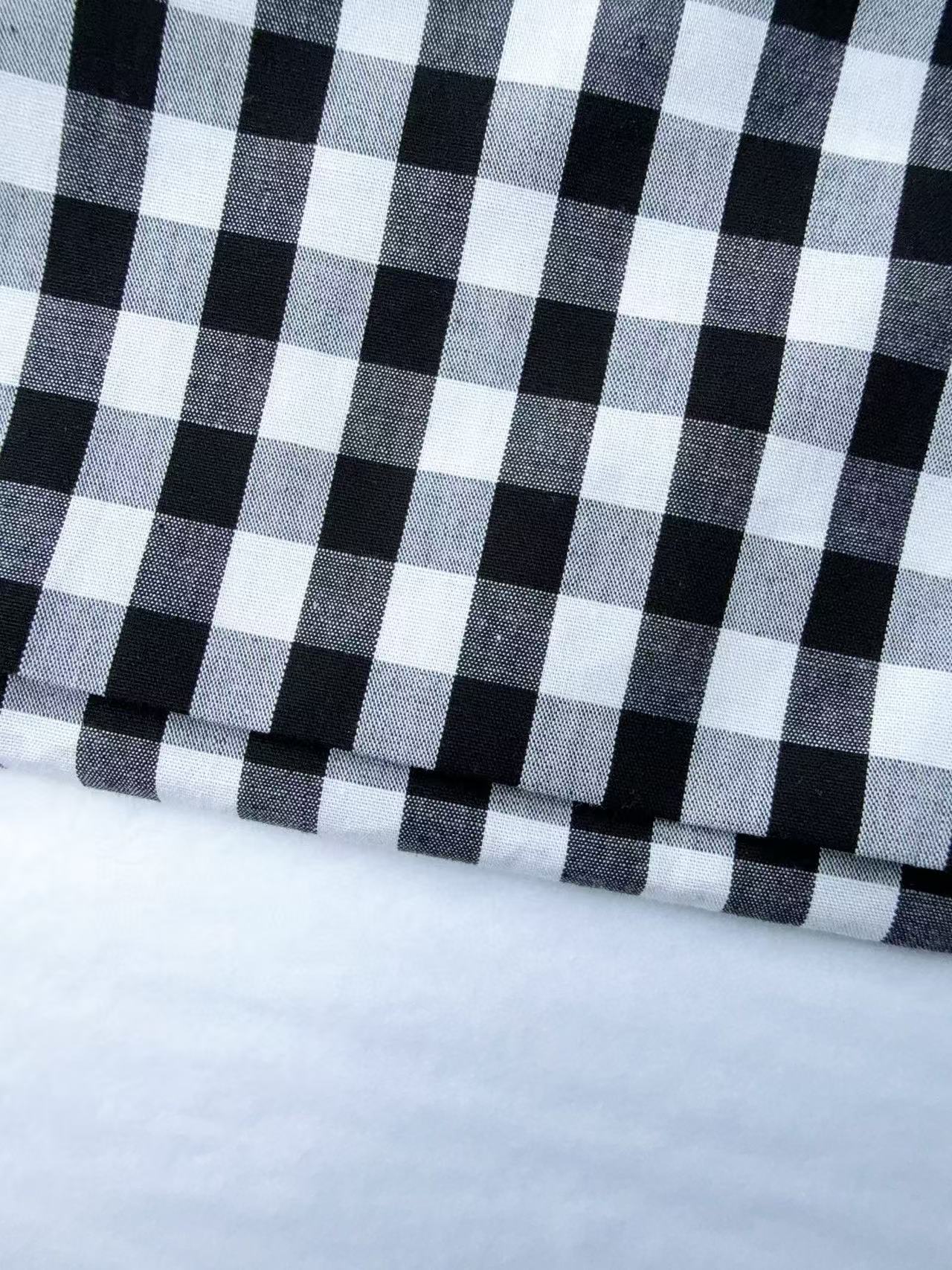 材質:定制黑白撞色細格紋材質,柔軟透氣,質感細膩,穿著舒適又有層次感。