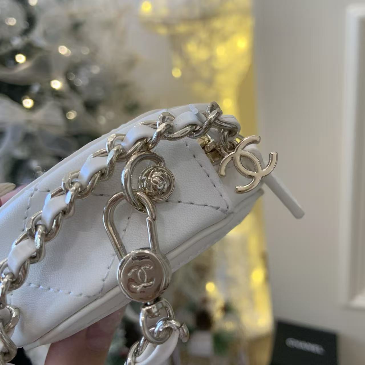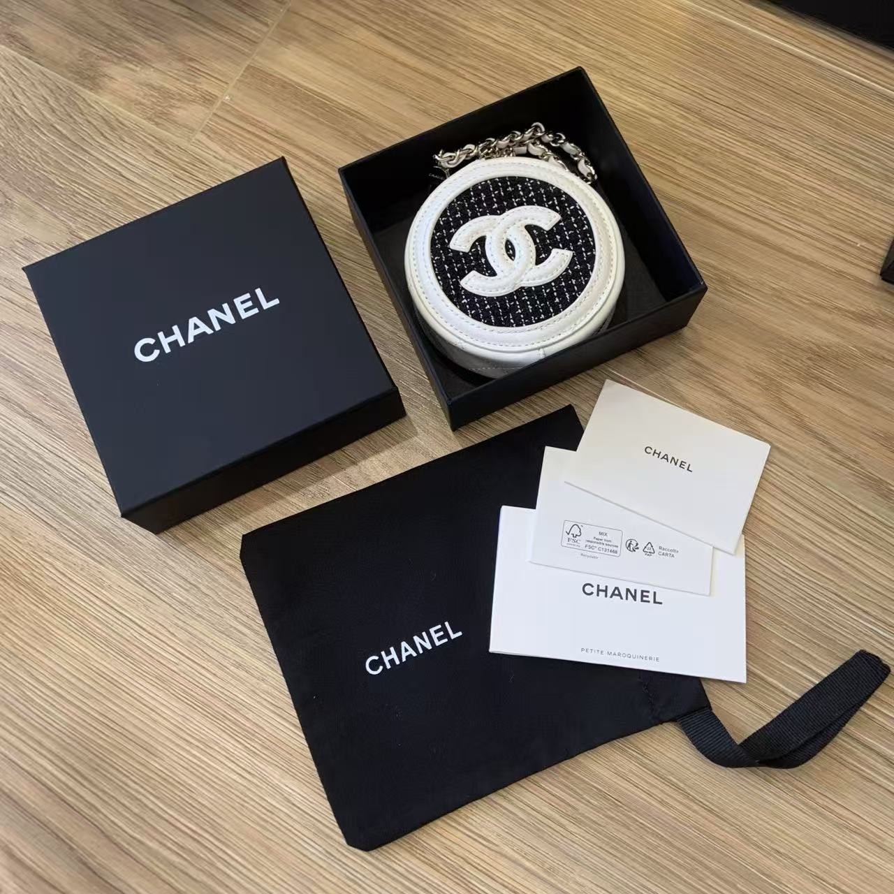 將經典元素濃縮在小巧的尺寸中:經典雙 C Logo: 包身中央飾有經典的雙 C Logo,簡約卻充滿辨識度,一眼就能看出是香奈兒的出品。